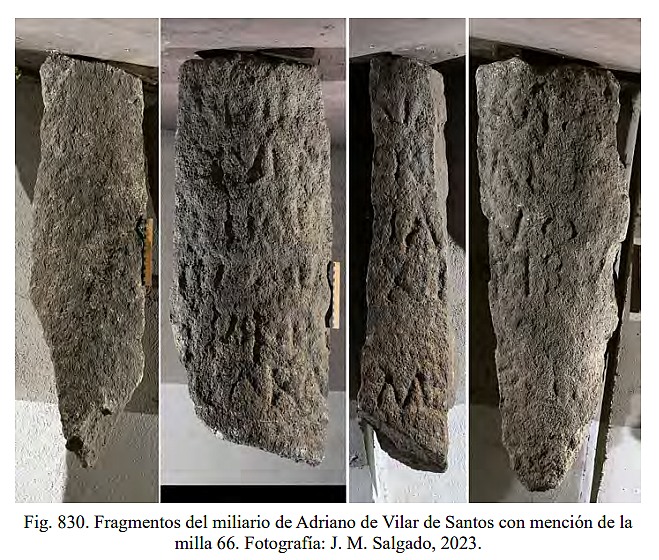 Tomar (SEILIUM) - Salamanca (SALMANTICA) CCXX m.p. Itinerário de Seilium (Tomar) a Salmantica (Salamanca) cruzando o rio Zêzere junto da foz do rio Codes, seguindo depois por Vila de Rei rumo a Castelo Branco (V2 em Batata, 2006); a via é referida em 1199 na doação por D. Sancho I da herdade da Azafa à Ordem do Templo como «via de Egitania» (Almeida, 1956a:299-301; Saa, 1967:158; DDS, 117). Em Castelo Branco recebia uma outra a via vinda de Ammaia que cruzava o rio Tejo na Barca de Perais, seguindo por Alcains, Atalaia do Campo e Catrão rumo à Ponte de Capinha, de onde se dirigia para a travessia da Serra da Opa em direcção à travessia do rio Côa em Sabugal, continuando por Alfaiates (miliário) rumo a Salamanca. A distância medida de Tomar a Salamanca totaliza 220 milhas, pelo que adicionando as 96 milhas de Tomar a Lisboa, perfaz 316 milhas de Lisboa a Salamanca, número redondo que evidencia a estrutura modular da rede viária antiga (act, 2025). Itinerário de Tomar a Castelo Branco Itinerário partindo de Tomar rumo ao Zêzere. Inicialmente a via seguia pela Portela da Légua ou por Junceira até Venda do Rijo (Olalhas), continuando depois pela EM530 e o CM1108, por Ventoso, Bodegão, Cabeça de Carvalho, Sesmarias e Cardal, rumo à travessia do rio Zêzere junto da Foz de Codes (Bairrada), subindo na outra margem pela cumeada do monte em direcção a Vila Rei. Poderia continuar por Vale do Grou, Penedo, Palhota (EM1301; mutatio?), Portela do Curral, Eira Velha, Várzeas (cruza a V1b), Azinhal (paralela e a norte da EM) e Cardigos (cruza a V1). Daqui tomava o caminho pelo viso da serra que passa no Alto da Roda, seguindo em direcção a Proença-a-Nova, contorna esta povoação pela rua de Vale Frade e segue pela rua da Cavaleira para o Alto de Casais até entroncar na EN241, continua junto dos topónimos Moitas, Espinho Pequeno, Pedra do Altar e Vale da Mua, onde cruza o rio Ocreza. Continua por Ladeira e Perdigão, cruzando a Serra das Talhadas através da Portela da Milhariça. Continua por Alvaiade, Tojeirinha, Vale do Homem, Rodeios, passa em Amarelos (a norte de Sarnadas) e continua pelo Alto de Benquerenças rumo a Castelo Branco (Batata, 2006; Romão, 2012). Castelo Branco O triângulo formado pela Capela de Ns. de Mércoles, Capela de Santa Ana e Monte de São Martinho é uma zona muito romanizada com imensos vestígios achados nesta área, algumas funerárias como o epitáfio de Boutius da gens Ilaesurie em particular muitas epígrafes votivas, ara aos Bandi Vorteaecio, ara a Iunoni Linteica e a ara votiva a Aratibro ou Marati Boro proveniente da Quinta da Polida que actualmente integram a excelente colecção do Museu Tavares Proença Júnior em Castelo Branco (MTPJ); juntamente com o povoado proto-histórico situado no Castro de São Martinho, toda zona revela uma população indígena muito romanizada o que levou alguns autores a colocar aqui os Tapori, povo referido na famosa inscrição da Ponte de Alcântara (Alarcão, 2001, 2005c; Guerra, 2007a). Itinerário de Castelo Branco a Salamanca por Capinha e Sabugal (Curado,1987; Osório, 2006) Castelo Branco (segue talvez por Lirião, Atacanha e junto dos vestígios da Quinta da Pedra da Légua, a milha IV, continuando por Alto do Feitoso e Capela de Santa Apolónia) Alcains (duas aras votivas na Ermida de São Domingos dedicadas a Asidia; continua junto do povoado romanizado da Cabeça Pelada na milha X, eventual mutatio onde apareceu uma ara a Reve Langanidaeco, actualmente no MTPJ, inflectindo depois para nordeste na direcção da linha férrea que acompanha pelo lado nascente por 1 km, desviando depois para a Igreja de Lardosa pelo «Caminho da Tapada da Eira» e rua da Alverca) Lardosa (ara votiva a Trebaronne na Quinta das Alvercas, actualmente no MTPJ; continua pelo «Caminho do Tanque», Monte do Senhor Vidar, seguindo depois paralela à linha férrea pelo Alto da Fadagosa) Atalaia do Campo (possível miliário na rua das Traseiras; cruza a ribeira de Alpreade na Ponte Velha e segue junto do topónimo «Vendas»; villa em Alagão; a via continua para nordeste passando a nascente da importante villa de Catrão, na base do castro romanizado da Covilhã Velha, rumo à mutatio de Quintas da Torre) Ponte Medieval de Capinha (cruza a ribeira de Meimoa e o Itinerário de Braga a Mérida) Capinha (daqui ruma para nordeste ao longo da margem direita da ribeira de Meimoa, +- a EM570-1, num percurso pontuado por grande número de sítios romanos) Salgueiro (em Coito de Cima/ Vale do Canto apareceu um miliário de Licínio II, actualmente no MAMJM; a via continua próximo da Quinta da Malta, seguindo depois pela Quinta do Lameirão e Coito de Cima, onde se achou o miliário) Travessia da ribeira do Casteleiro (junto do "casal" romano do Convento de José Francisco do Anascer; seguia depois paralela à ribeira do Vale de Lobo pela vertente sul do Castro de Sortelha Velha, passando próximo do Casal da Quinta da Quebrada e da villa de Lagoa) Vale da Senhora da Póvoa (antiga Vale de Lobo no sopé da Serra da Opa; villa e provável mutatio no campo do Peão, junto do sítio romano da Póvoa; inscrição honorífica ao imperador Trajano; os 3 miliários achados na Serra do Lobo/Opa sugerem que a via passava a meia encosta da serra da Opa, com uma possível mutatio na Póvoa e uma ara a Júpiter em Fonte Santa; a via é referida no Foral de Sortelha concedido por D. Sancho I em 1228 como «semederium veterem ad serram de opa»; PMH LC, 610) Santo Estevão (miliário de Tácito em Mosteiros indicando a milha IIIX, ou seja, sete milhas [CIL II 4638], talvez contadas a partir do local de travessia do rio Côa em Sabugal, sugerindo que o rio servia de limite territorial da civitas; o miliário, actualmente no Museu do Sabugal, estaria nas proximidades do vicus e provável mutatio da Tapada de Santa Maria) Alagoas (miliário de Alagoas com inscrição apagada; foi transladado para um largo da aldeia e actualmente no Muse