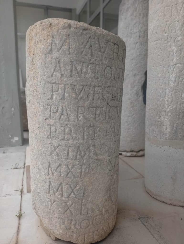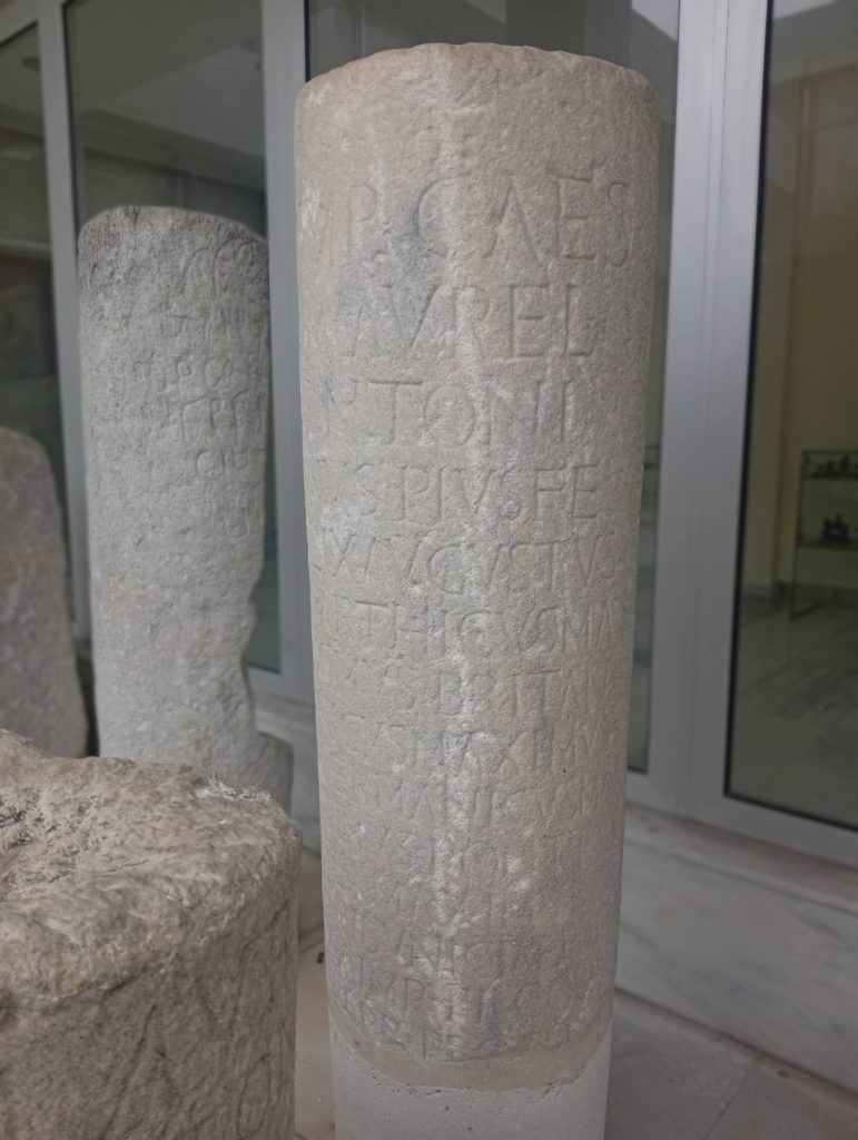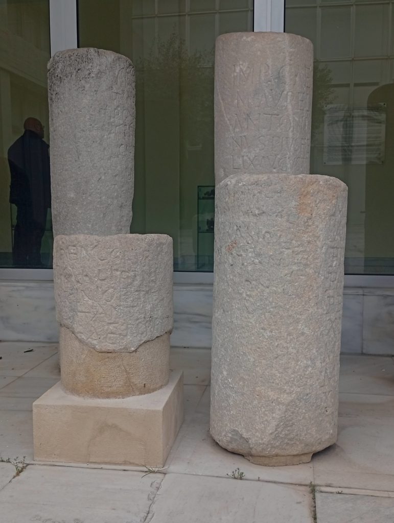 Several milestones were recovered from this stage of Via Egnatia, namely in the station of Amigdaleonas located 6 miles south of Philippi and 4 miles north of Kavala. It makes sense to a have a resting point here, mid-way between Philippi e Kavala. Some of these milestones can now be seen in the Archaeological Museum of Kavala.