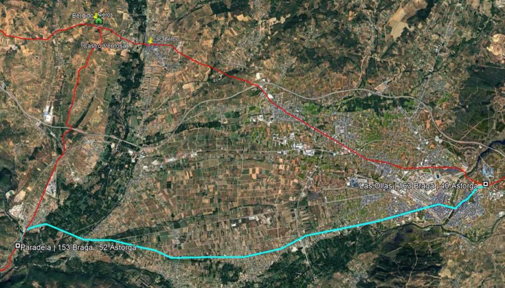 Em vez disso, a «Via Nova» desvia dessa rota em Paradela do Rio Sil (a 153 milhas de Braga) seguindo para nascente rumo a Ponferrada. Aqui cruzava o rio Sil, e logo depois atingia a estação viária de San Tomás de las Ollas, onde a «Via Nova» reunia com a variante por Bergido, estrada que integrava a grande rota de Lugo a Astorga descrita no Itinerário XIX. Assim, esta variante funcionava como um atalho encurtando o percurso em quatro milhas. Ora, como este atalho representa 12 milhas de caminho até San Tomás de las Ollas, aqui contam-se 165 milhas a Braga, lugar que por sua vez está a 40 milhas a Astorga. Deste modo, somando estes valores (165+40), obtemos a distância total de Braga a Astorga, ou seja, 205 milhas.
